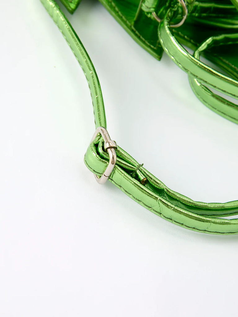 Bring holiday cheer to your child's wardrobe with this Christmas tree-shaped crossbody bag. Its shiny surface adds festive sparkle, while the convenient shoulder strap ensures easy, hands-free carrying. Perfect for little ones to carry their essentials in style during the holiday season.