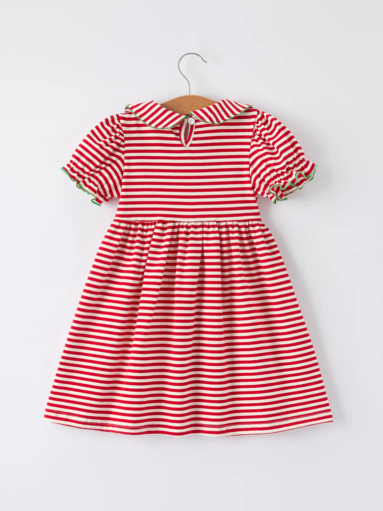 Celebrate the holiday season in style with this adorable toddler girls Christmas dress. Featuring classic red and white stripes and a sparkling sequin tree, this festive outfit brings joyful charm to any occasion. Soft and comfortable, it keeps your little one cozy while making holiday memories extra special. Perfect for family gatherings, photos, or festive playdates, this dress combines festive cheer with everyday comfort.