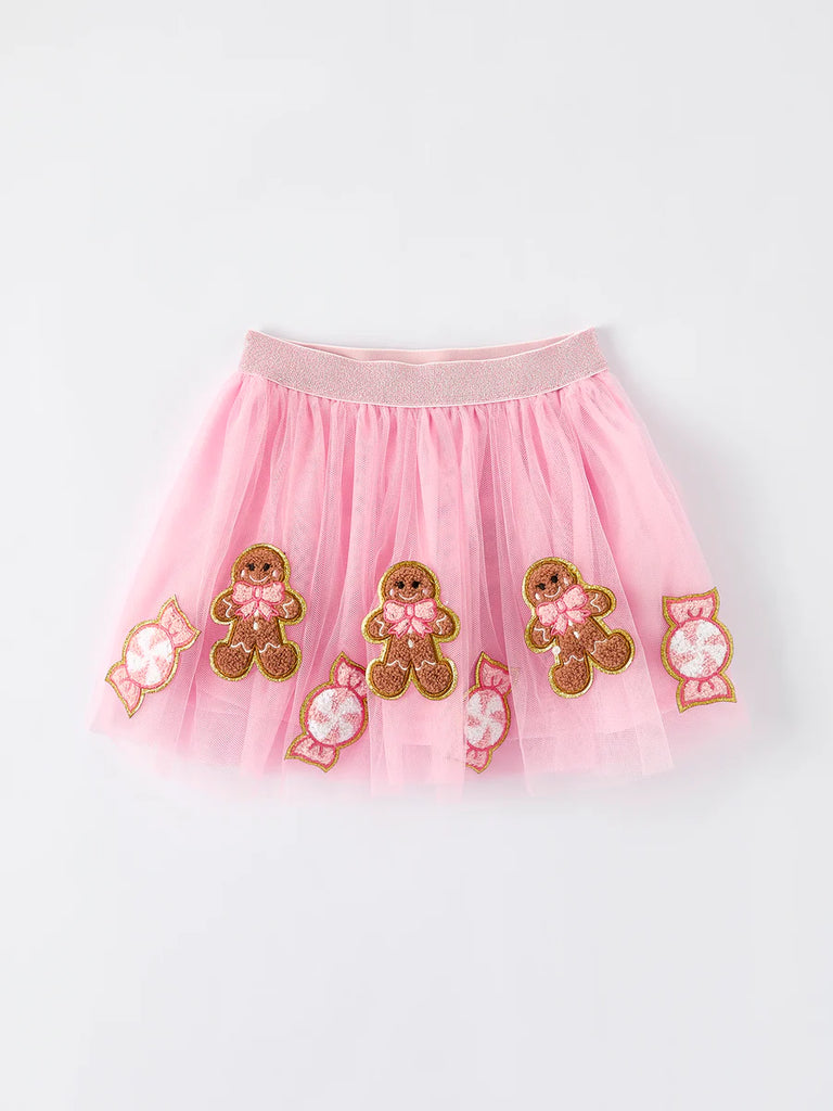 Dress your little one in festive cheer with this Girls Christmas Tutu Skirt. Crafted from soft pink mesh, it features charming gingerbread and candy appliqués that bring holiday magic to any outfit. Lightweight and comfortable, this tutu adds a playful, whimsical touch perfect for parties, photos, or festive family gatherings. Elevate her holiday wardrobe with a skirt that’s as joyful and sweet as the season itself.