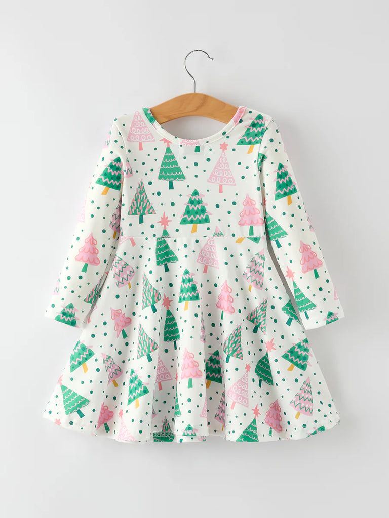 Embrace the festive spirit with this charming holiday dress adorned with delightful Christmas tree and snow prints. Designed for comfort and style, it’s ideal for holiday celebrations, family photos, or cozy winter gatherings. Bring joy and warmth to every occasion with a dress that’s as festive as it is comfortable.