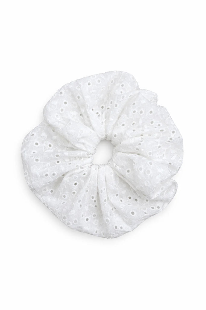 Add the perfect pop of flair to your everyday look with this eyelet scrunchie. Designed with a soft fabric and an oversized silhouette, it holds your hair securely without pulling or creasing, making it as gentle as it is stylish. Whether you're tossing your hair into a messy bun, sleek ponytail, or wearing it on your wrist as a statement accessory, this bold beauty brings effortless glam to any outfit.
