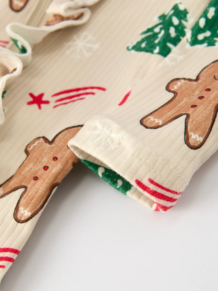 Bring festive cheer to bedtime with the Gingerbread Christmas Girls Romper featuring a cozy nightcap. This charming set offers warmth and comfort, perfect for holiday evenings and capturing sweet holiday vibes. Designed with festive details, it makes bedtime feel special and joyful, ensuring your little one feels snug and merry all season long. Celebrate the holidays with this adorable romper and nightcap ensemble.