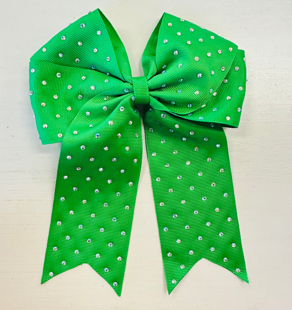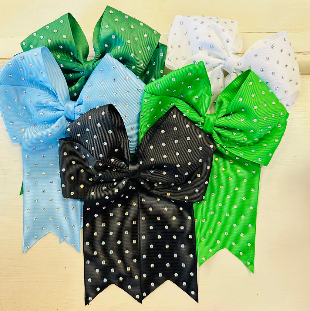 Elevate your look with these stunning 6" x 7" holographic rhinestone bows. Each pair features eye-catching sparkle and shimmer that catches light from every angle, perfect for performances and competitions. The secure alligator clip ensures your bow stays in place through jumps, tumbles, and routines.